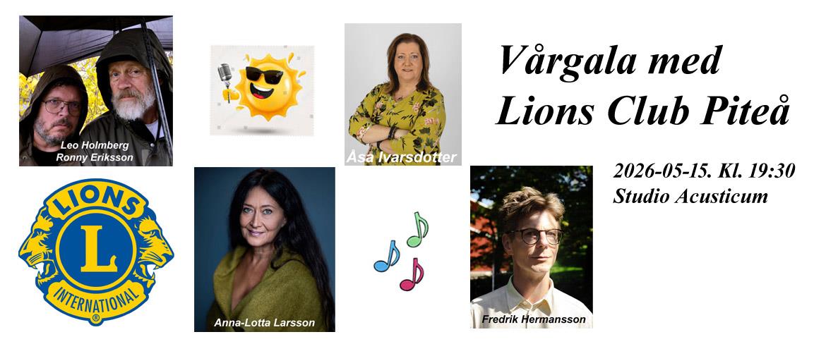 Lions invite you to an exuberant spring gala filled with music, laughter and a wonderful atmosphere. On stage you will meet two brilliant divas and three charming gentlemen who together offer an evening of both beautiful singing and top-class humor!