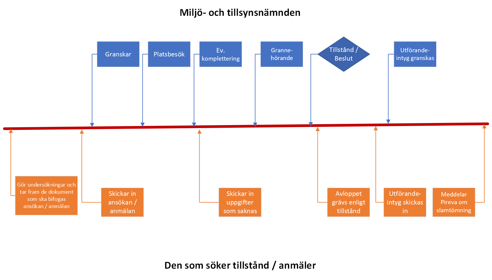 Handläggningstiden är högst 12 veckor från det att ansökan/anmälan är komplett. Behöver vi kontakta dig för att be dig komma in med kompletteringar, kan handläggningstiden bli längre än 12 veckor. Vintertid kan handläggningstiden bli längre om det är mycket snö eftersom det då kan vara svårt att besikta och bedöma platsen för anläggningen.