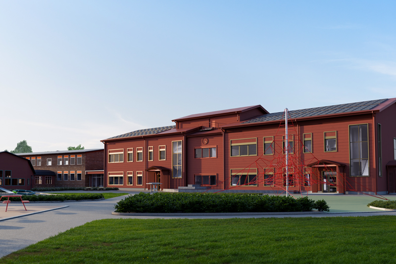 På skolområdet ska två nya byggnader uppföras. Den befintliga högstadiebyggnaden bevaras och ska byggas ut i nordost med en byggnadskropp som ska inhysa årskurs 4-6. Längre söderut ska en ny byggnad för F- 3 uppföras.