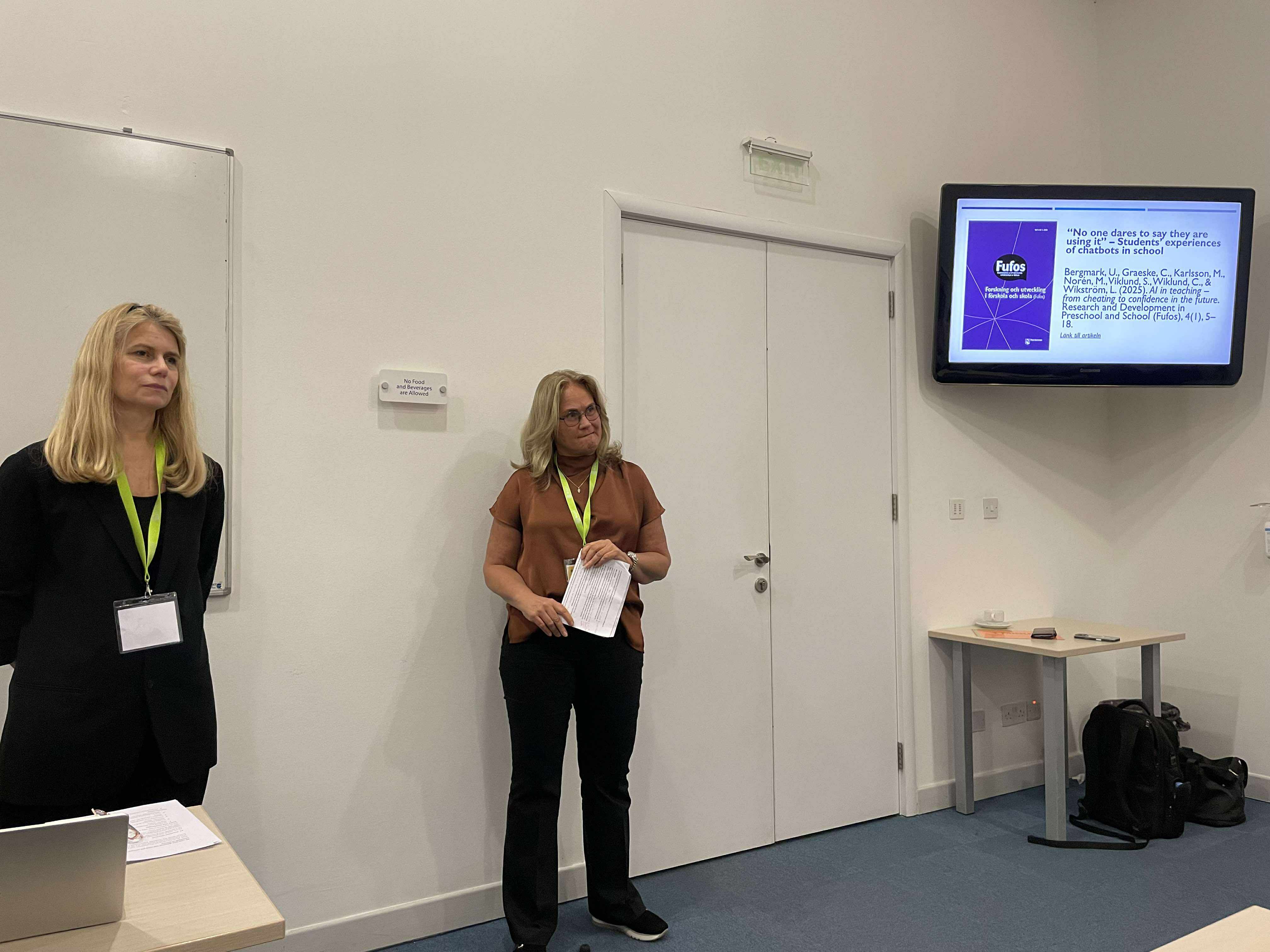 Caroline Graeske och Christina Wiklund presenterar AI-studier om lärares och elevers erfarenheter av AI i undervisningen