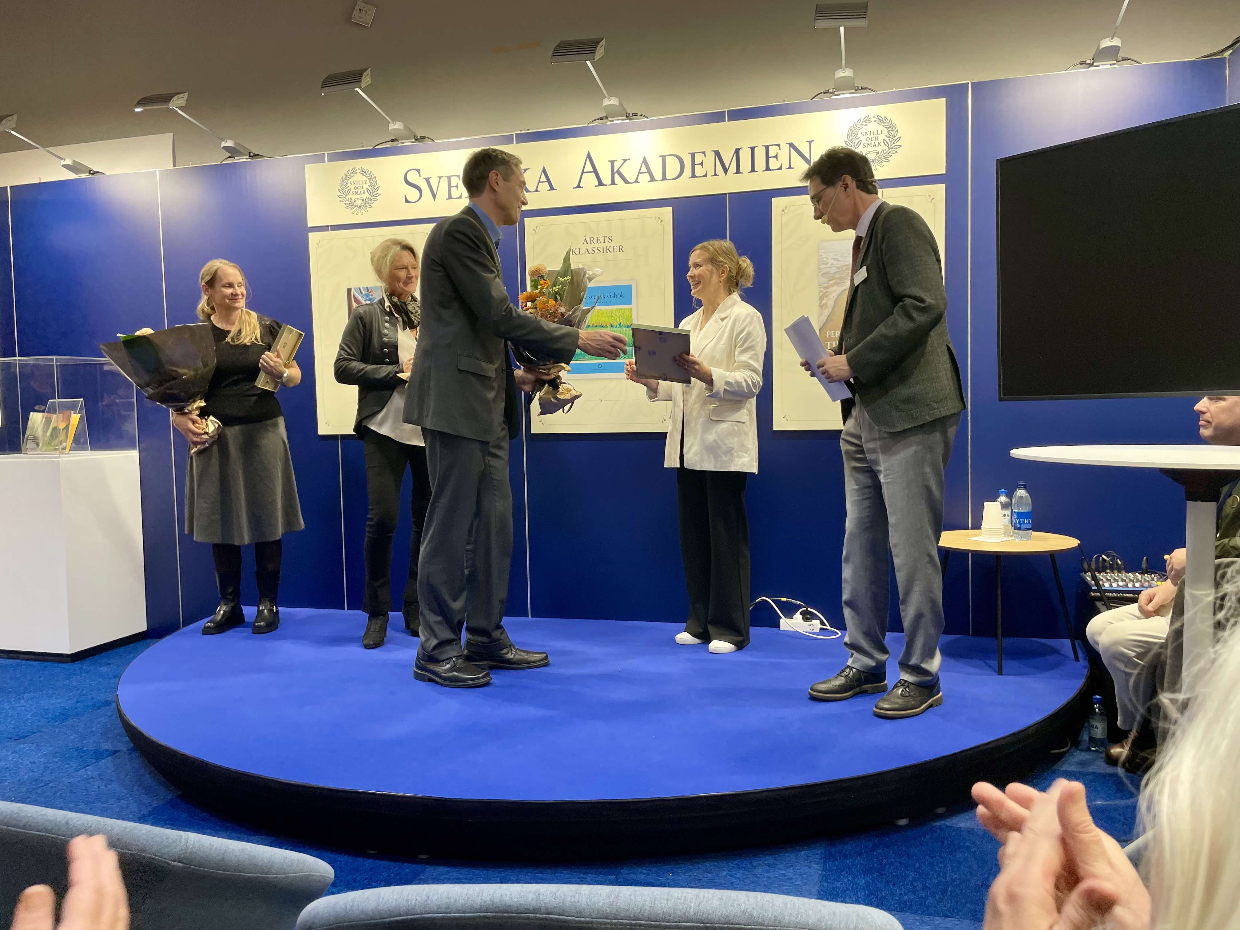 Linda Wikström tar emot pris från Svenska Akademien för sina insatser i svenska som andraspråk